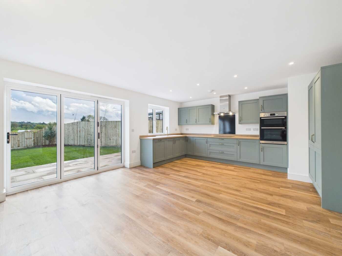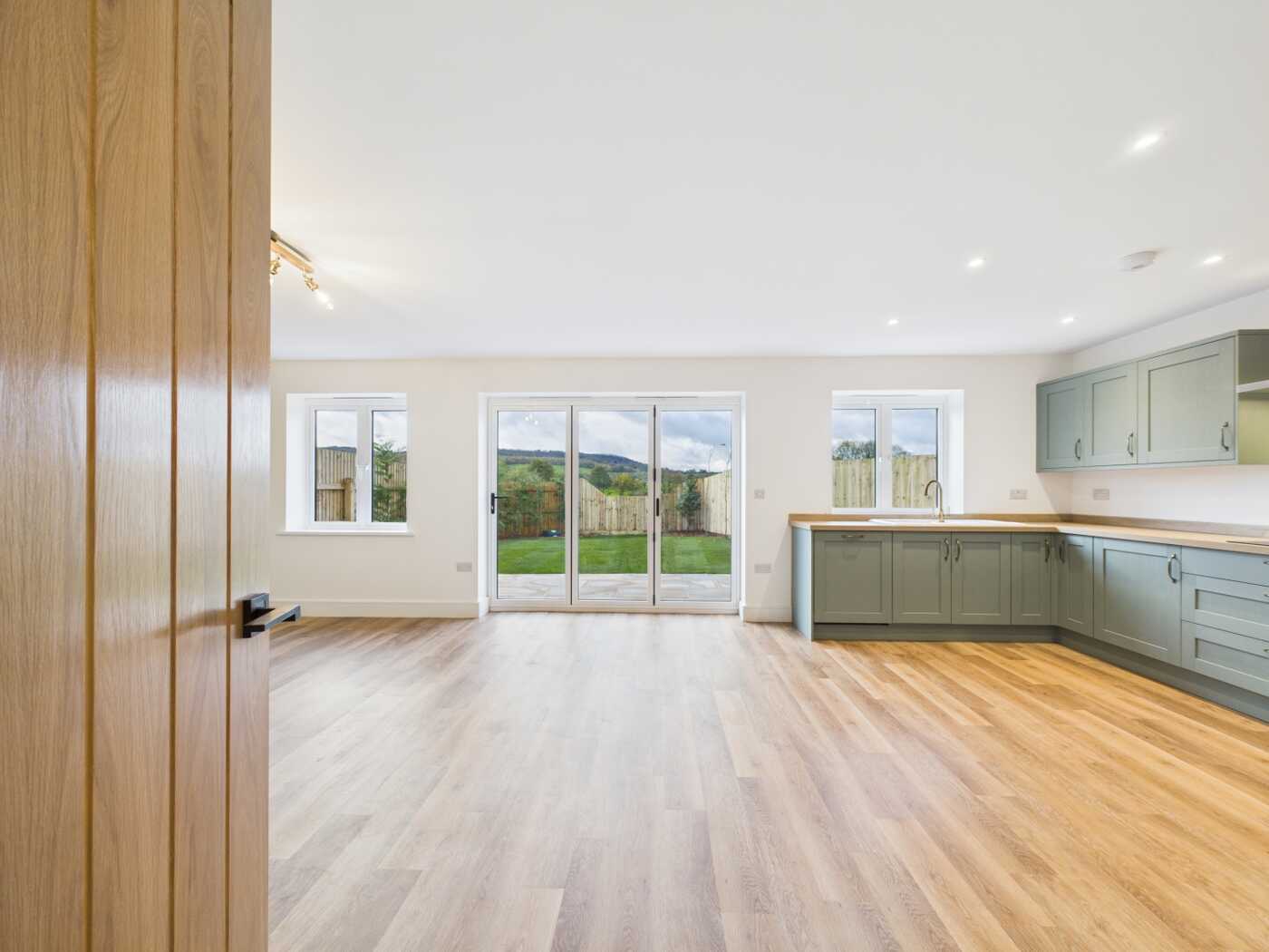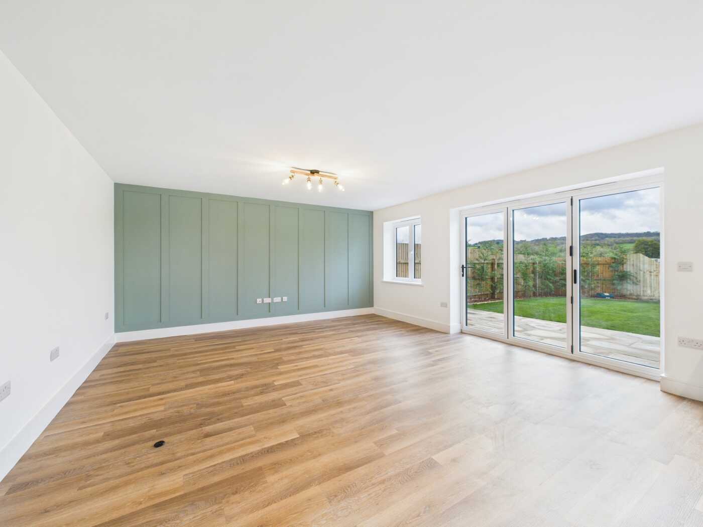 The property itself benefits from being located within a lovely position, which offers stunning far-reaching countryside views. All fixtures are of the highest quality, including a bespoke kitchen with integrated appliances, a custom-designed bathroom suite and en-suite bathrooms, high-quality materials throughout, which are under warranty, underfloor heating throughout the whole property, which is powered via an air-source heat pump, a private landscaped garden, as well as parking for two cars.