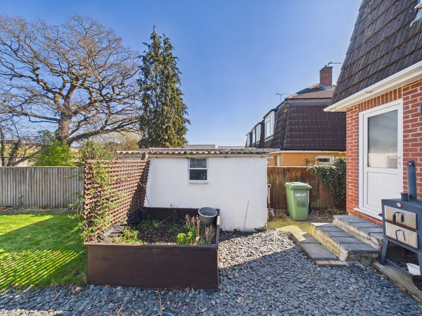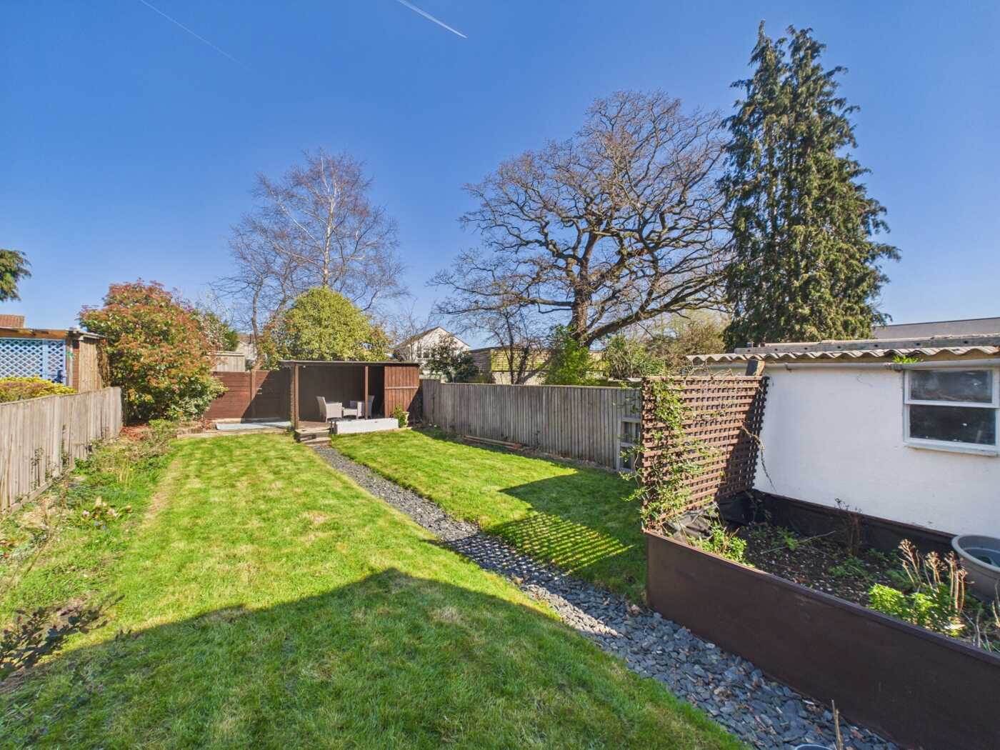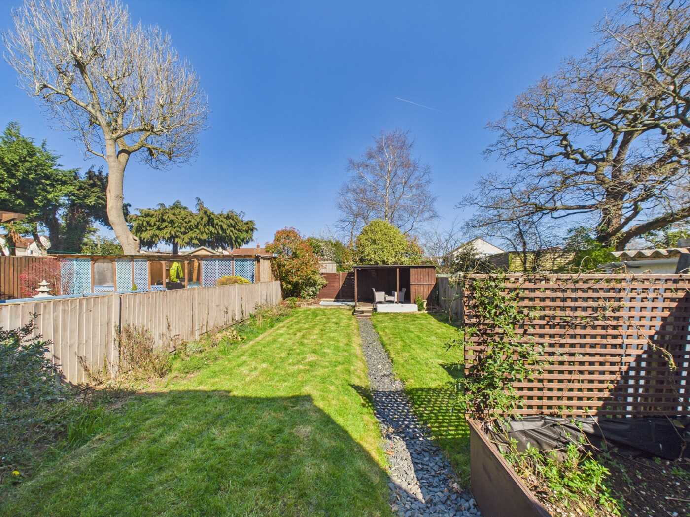 Externally, the property boasts a generous garden that is perfect for outdoor living. It includes a patio seating area, a lush lawn, and raised decking adorned with a pergola, offering a peaceful retreat for relaxation or socialising.