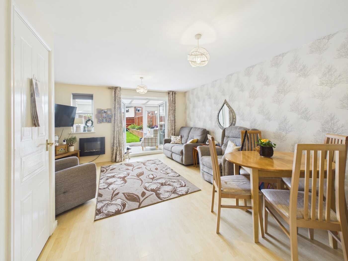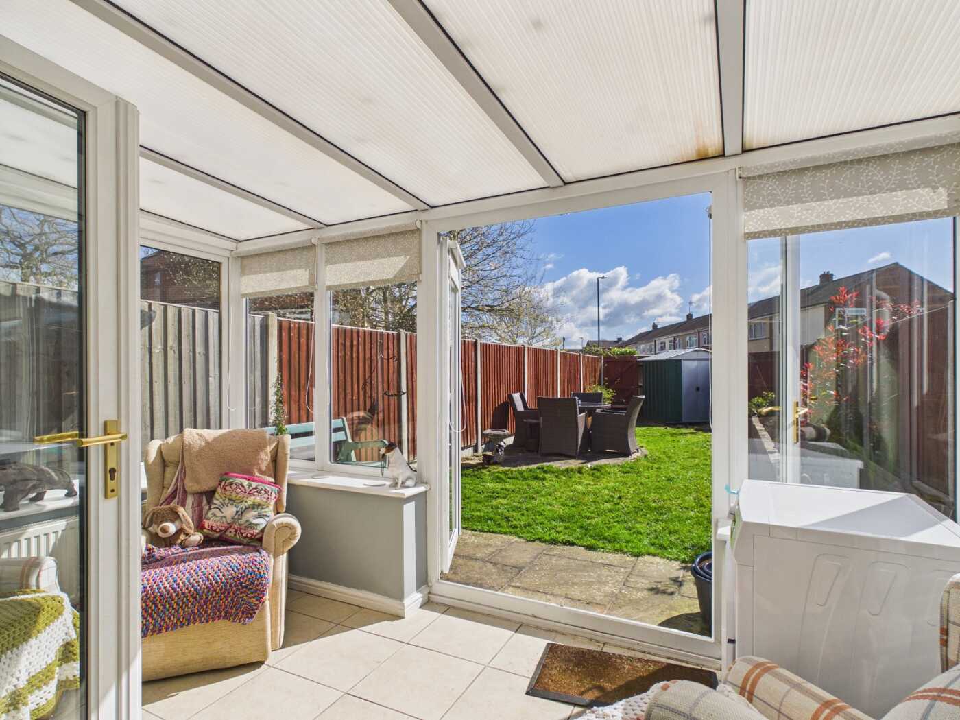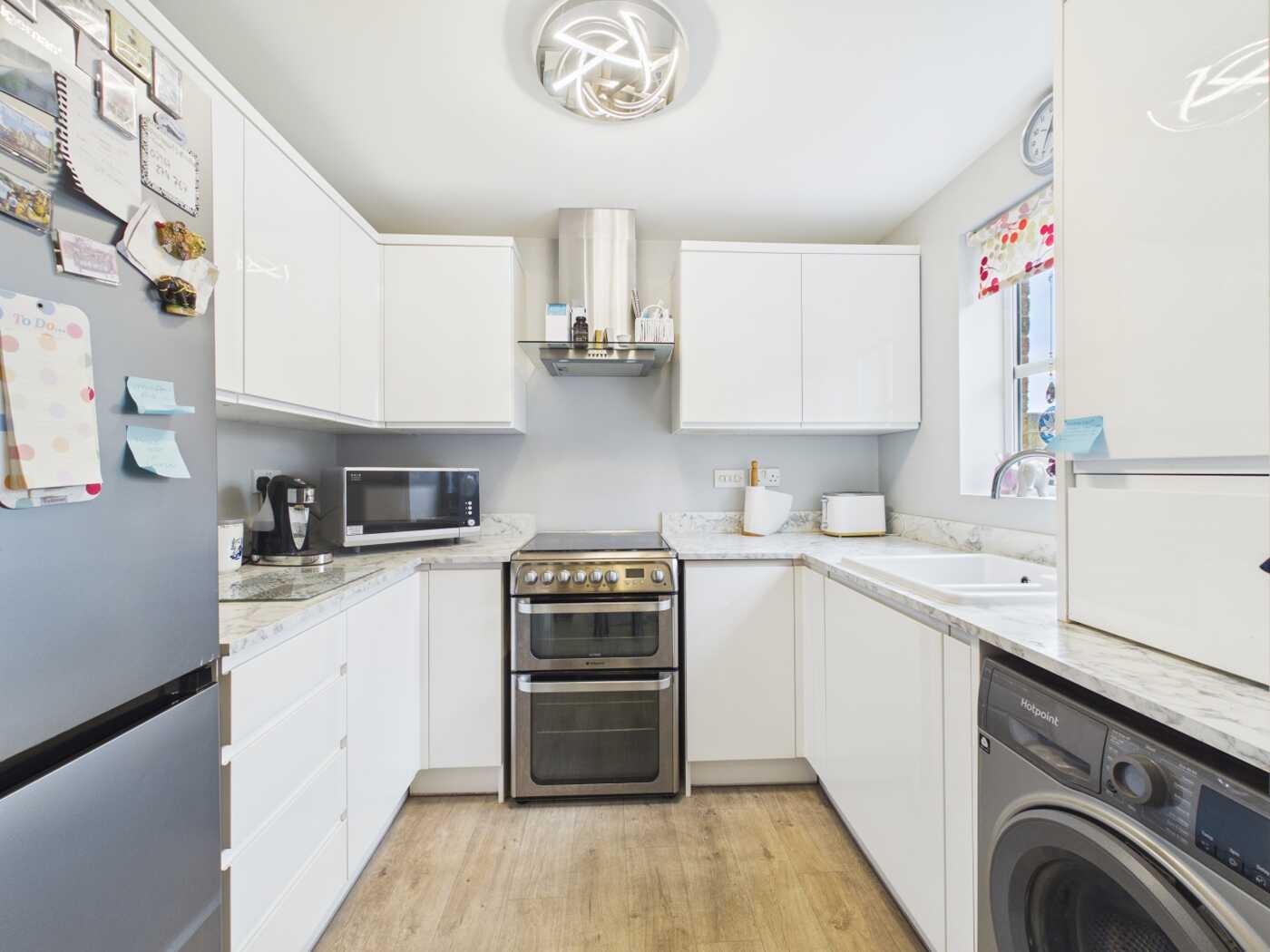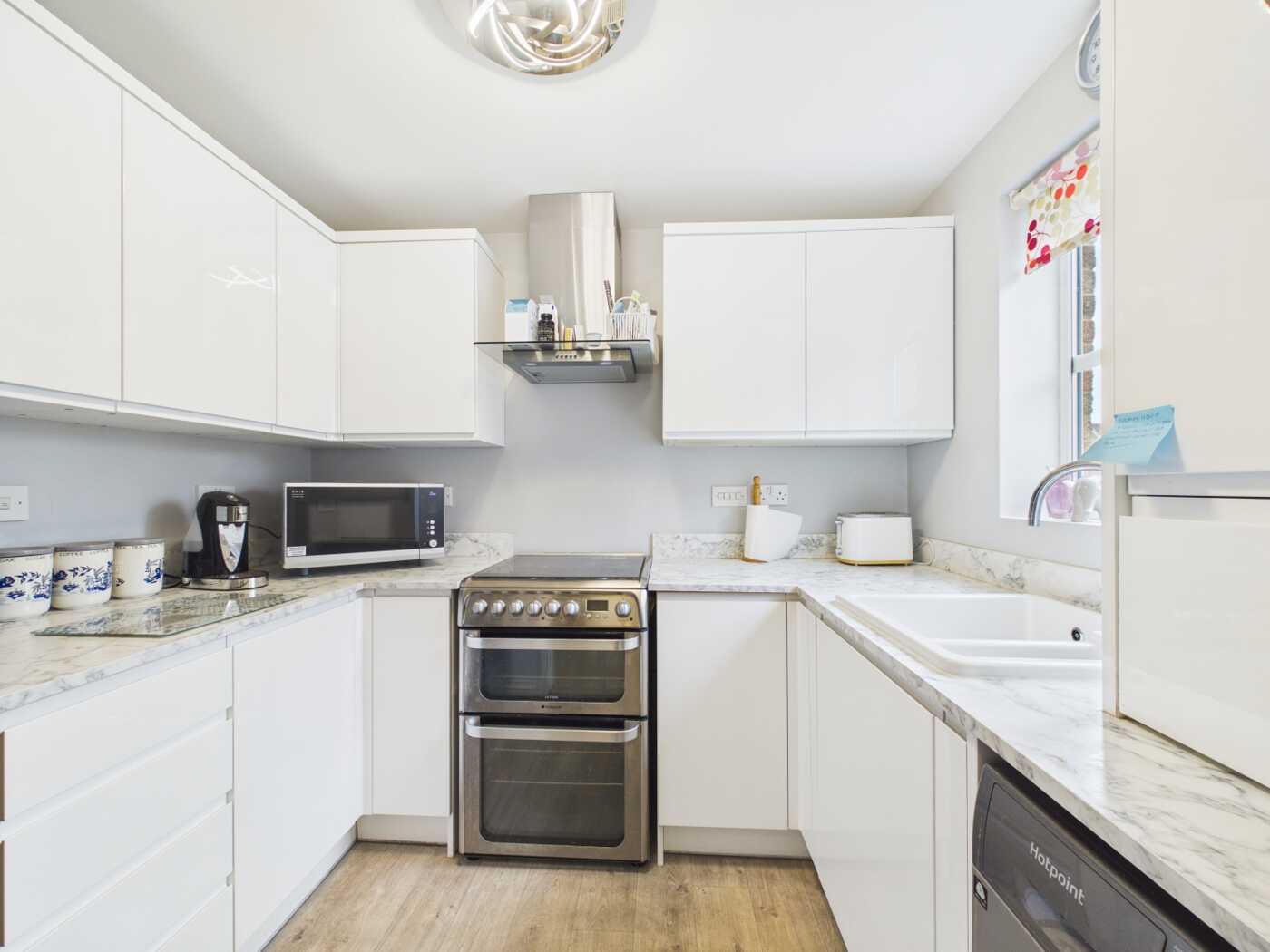 The ground floor features a bright and welcoming lounge, with natural light streaming through double doors that open into a separate conservatory. This additional space is perfect for relaxing or entertaining guests. The fully fitted kitchen is equipped with modern appliances and ample storage, making it both functional and stylish. A convenient downstairs W.C. adds to the practicality of the home.